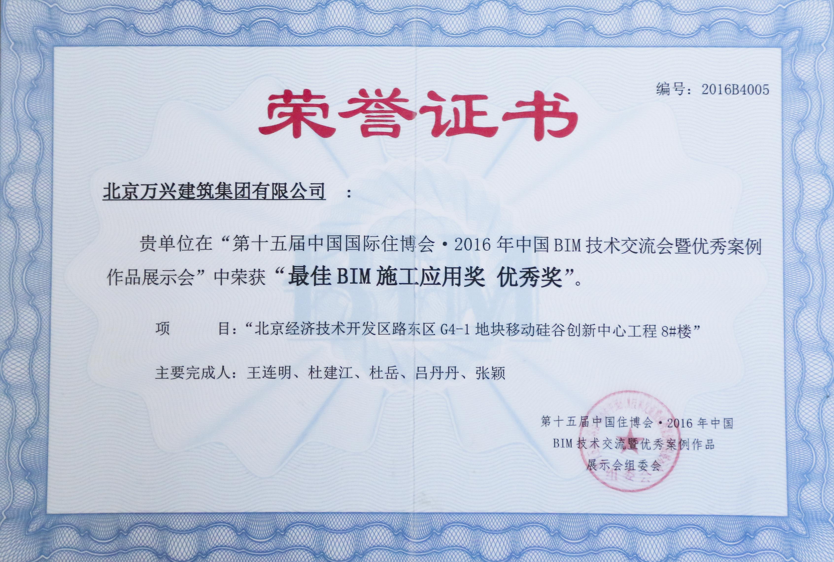 最佳BIM施工應(yīng)用獎 優(yōu)秀獎
