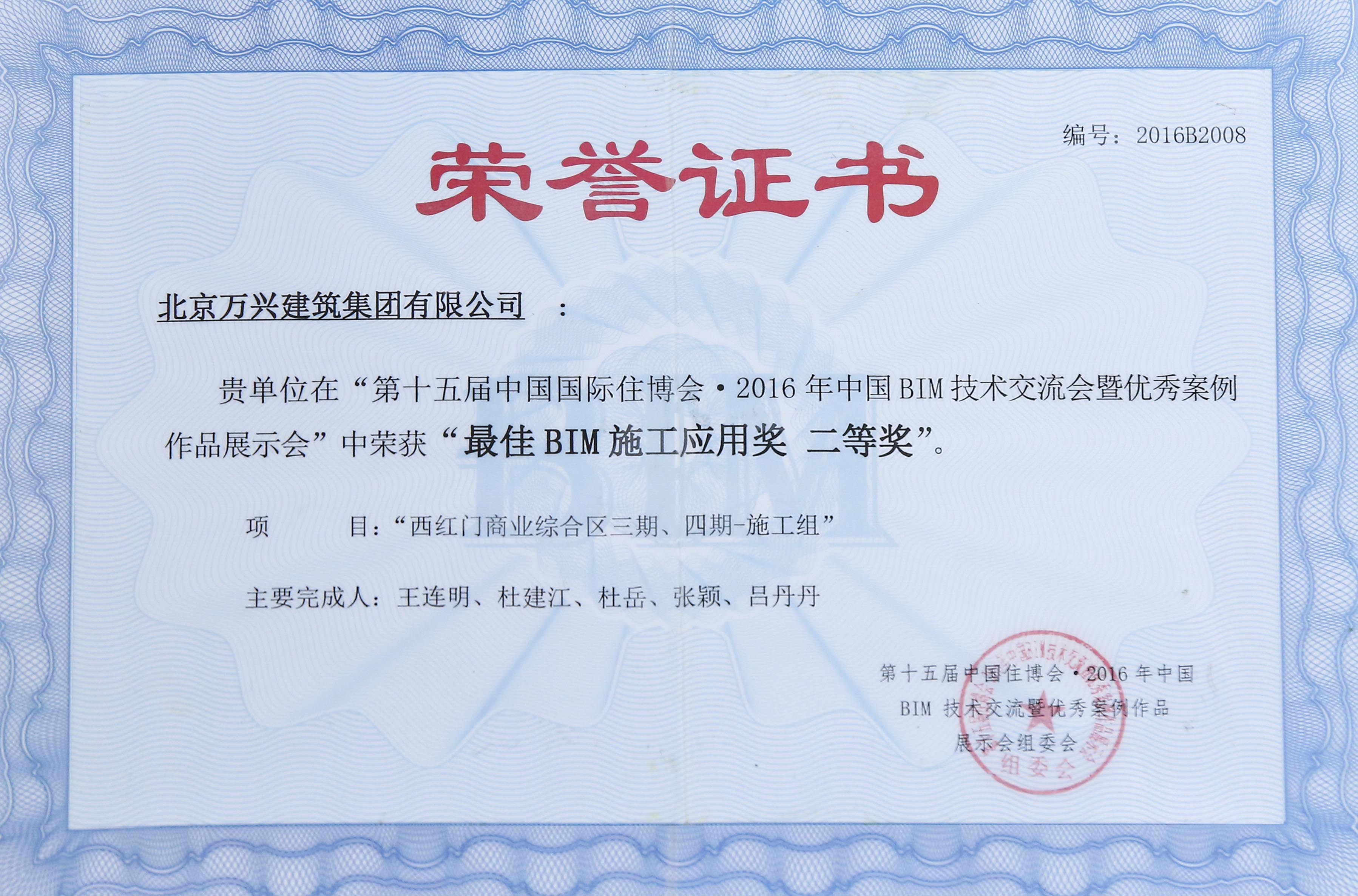最佳BIM施工應(yīng)用獎(jiǎng) 二等獎(jiǎng)