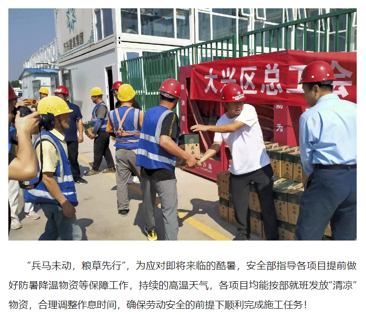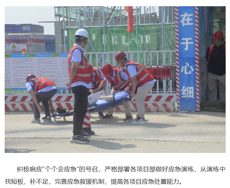 在第二十二個(gè)全國“安全生產(chǎn)月”,集團(tuán)公司安全部圍繞“人人講安全 個(gè)個(gè)會(huì)應(yīng)急”的主題,組織安全知識(shí)競賽和教育培訓(xùn),廣泛宣傳安全生產(chǎn)知識(shí),使安全意識(shí)深入人心;實(shí)行隱患排查和應(yīng)急演練并舉,提高全員安全管理水平和應(yīng)急處置能力,強(qiáng)化安全生產(chǎn)底線思維;發(fā)揮智慧工地創(chuàng)新優(yōu)勢,拓寬管理思路,升級(jí)安全管理模式;部署防暑降溫物資保障工作,組織各項(xiàng)目落實(shí)高溫天氣施工安全保障措施。