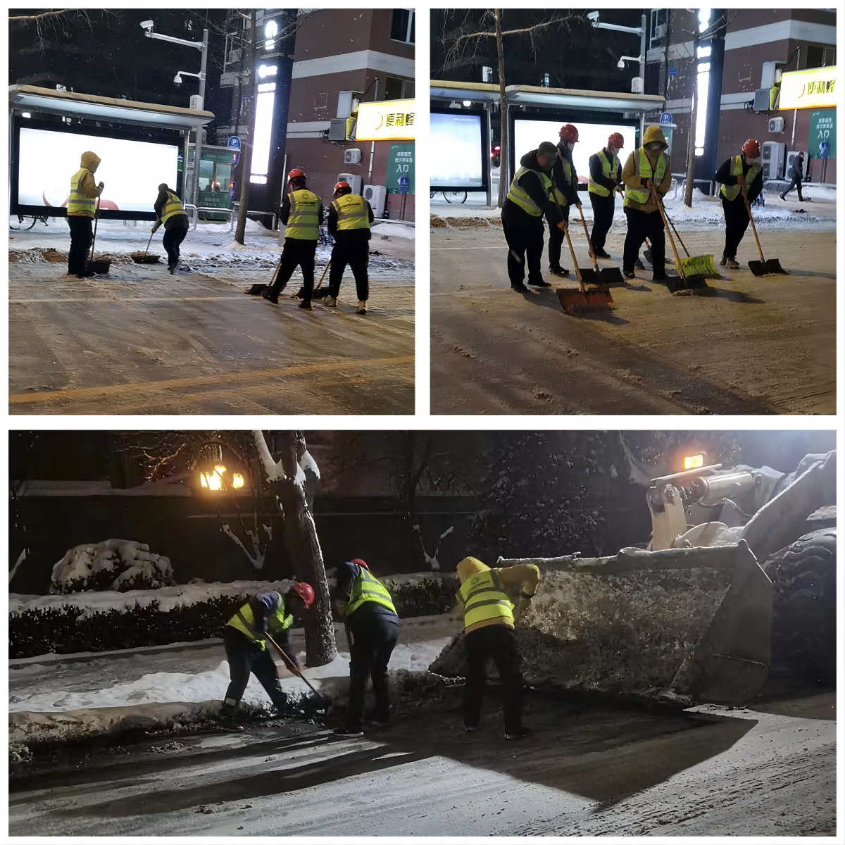 集團(tuán)安全總監(jiān)李春濤、安全部部長王松等領(lǐng)導(dǎo)親自帶隊(duì),分兩組在北興路、印刷學(xué)院北門路段、棗園路段等三個(gè)重要路段進(jìn)行掃雪鏟冰工作。在寒風(fēng)暴雪中,他們不畏嚴(yán)寒,手持鐵鍬,你鏟我掃,齊心協(xié)力,經(jīng)過近4個(gè)小時(shí)的連續(xù)奮戰(zhàn),直到23點(diǎn)半才圓滿完成任務(wù),清理完畢的道路給市民送去的不僅是出行的安全,更傳遞了冬日里的一份別樣的溫暖。