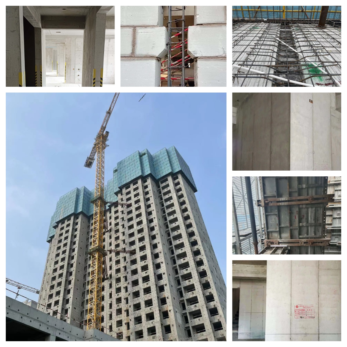 在項目建設初期,為加速施工進程并確保施工質量,項目決定采用外防護架爬架與鋁膜相結合的施工方法,不僅提高了施工生產效率,同時也切實提高了混凝土的主體外觀質量。在各方領導的關心和支持下,在集團公司副總經理馬和平的帶領下,項目部全體成員克服了夏季高溫酷暑、汛期頻繁暴雨等諸多不利因素,經過170天緊鑼密鼓的施工后,比預定工期提前8天,實現了全面封頂的施工目標。